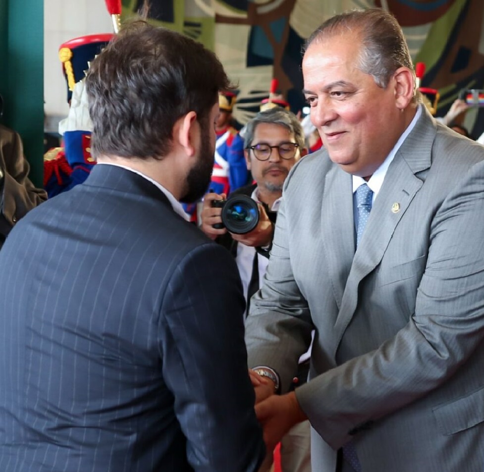 O vice-presidente do Senado Federal e presidente do PL Tocantins, senador Eduardo Gomes, participou nesta quarta-feira, 23, da recepção oficial ao presidente do Chile, Gabriel Boric, no Salão Nobre do Senado. O encontro foi conduzido pelo presidente da Casa, senador Davi Alcolumbre, e integra a agenda da visita oficial do chefe de Estado chileno ao Brasil.