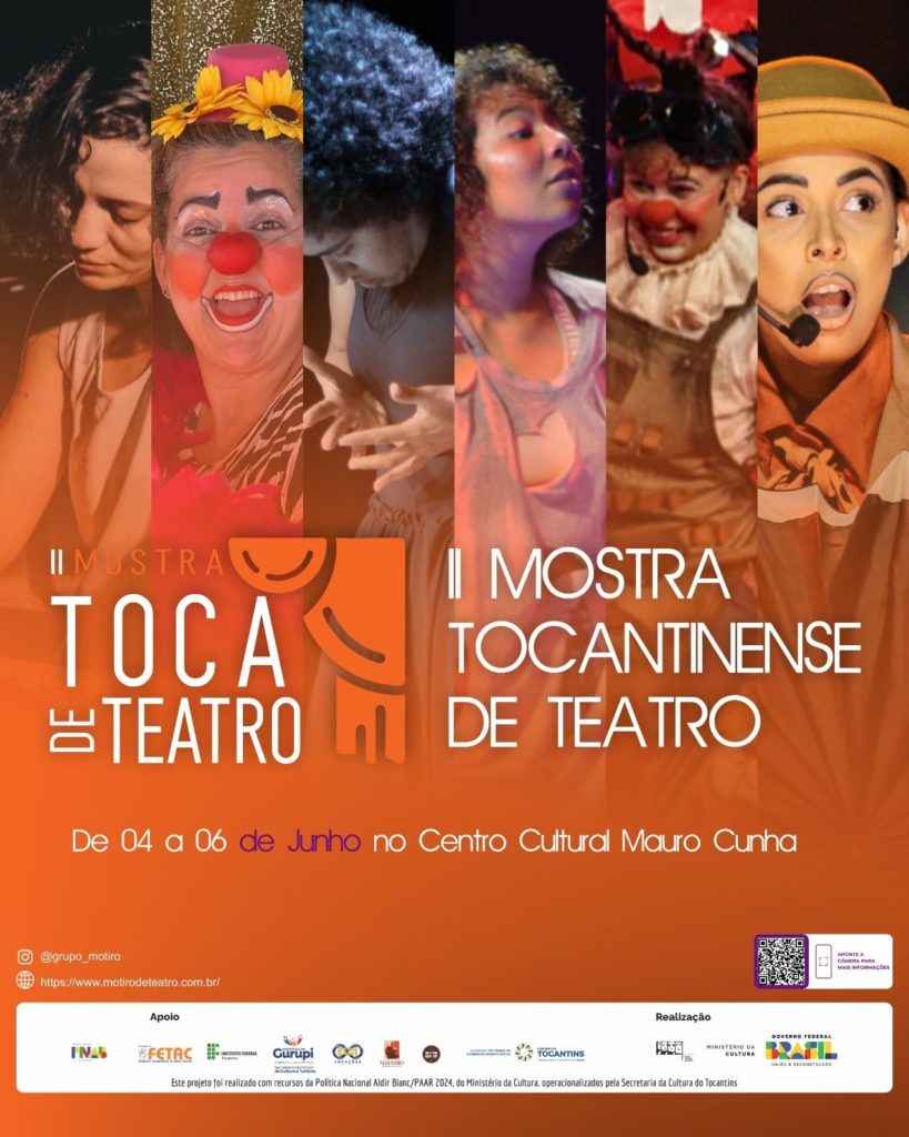 O Centro Cultural Mauro Cunha, em Gurupi, será palco de um dos maiores encontros teatrais do estado nos dias 04, 05 e 06 de junho, com a realização da Mostra Toca de Teatro. O evento é promovido pelo Grupo Motirõ de Teatro, sob a direção do diretor teatral Fernando França, e conta com o patrocínio da Lei Aldir Blanc, por meio do Ministério da Cultura.