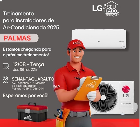 São Paulo, 07 de agosto de 2025 – A cidade de Palmas será a próxima a receber o Roadshow LG para Instaladores, que acontece no dia 12 de agosto, das 18h às 22h, no SENAI Taquaralto (Avenida Tocantins, Nº 06-A, Quadra 09, Setor Morada do Sol). Gratuito e voltado para profissionais da área de ar-condicionado e climatização, o evento tem como objetivo capacitar e atualizar instaladores sobre as inovações e soluções da marca, além de fortalecer a qualidade dos serviços prestados no setor.