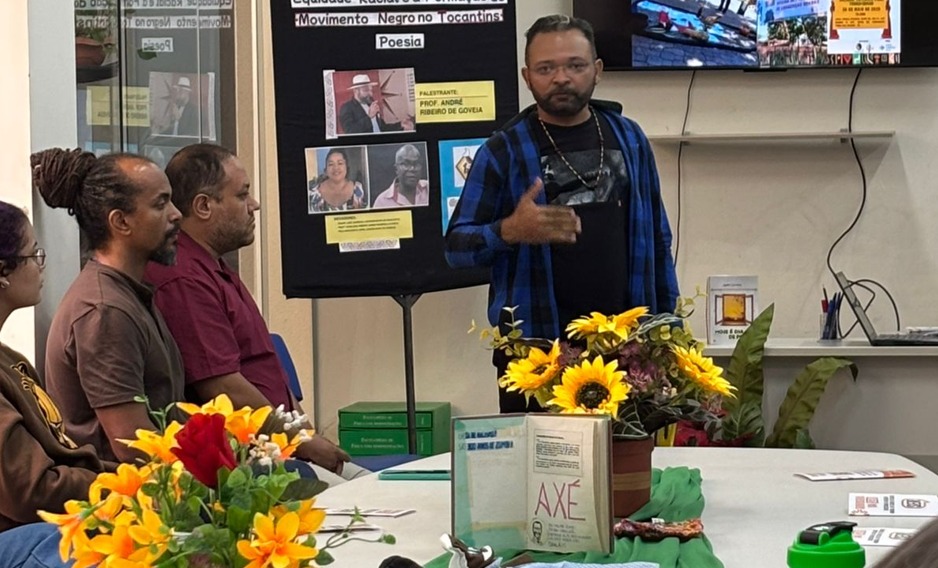 O Grupo de Consciência Negra do Tocantins (Gruconto) realizou, no dia 23 de setembro, uma atividade cultural e formativa na Escola Estadual Elizângela Glória Cardoso, na capital, com a palestra “Equidade Racial e a formação do movimento negro no Tocantins”. O momento foi conduzido pelo escritor, poeta e professor André Goveia, membro fundador do Gruconto, e reuniu estudantes da 3ª série do Ensino Médio da turma 33.02, professores e convidados.