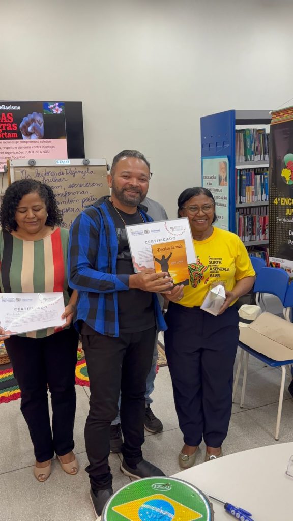 Ao final, o escritor André Goveia, juntamente com os coordenadores do Gruconto, foi homenageado pela comunidade escolar com uma lembrança personalizada e um certificado de reconhecimento, simbolizando a gratidão e a valorização pela contribuição ao fortalecimento da consciência negra no Tocantins.