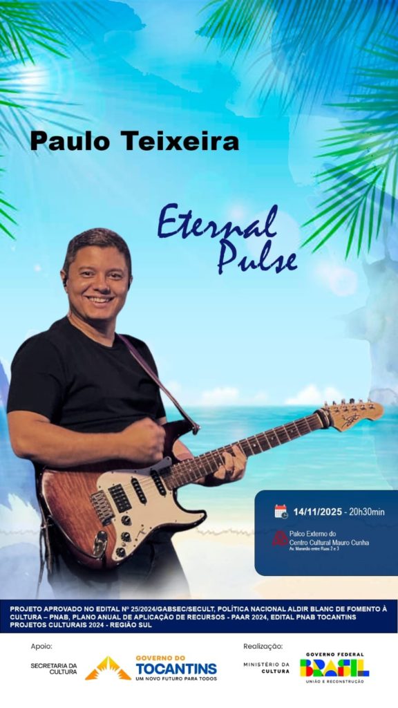 O músico e produtor tocantinense Paulo Teixeira apresenta, nesta sexta-feira, 14 de novembro de 2025, o show de lançamento do EP instrumental Eternal Pulse, no palco externo do Centro Cultural Mauro Cunha, em Gurupi. O evento é gratuito e tem classificação livre, celebrando o início de uma nova fase na carreira do artista, marcada pela valorização da música instrumental.