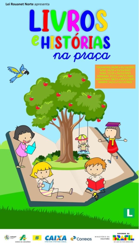 O projeto Livros e Histórias na Praça, contemplado pelo Edital Rouanet Norte, realizou uma ampla ação de incentivo à leitura e valorização da cultura popular em 10 municípios da Região Norte do Brasil, levando literatura, brincadeiras e atividades culturais a espaços públicos de convivência. A iniciativa contou com o patrocínio do Banco da Amazônia, Banco do Brasil, Correios e Caixa Econômica Federal, e teve como proponente Victoria Santiago.