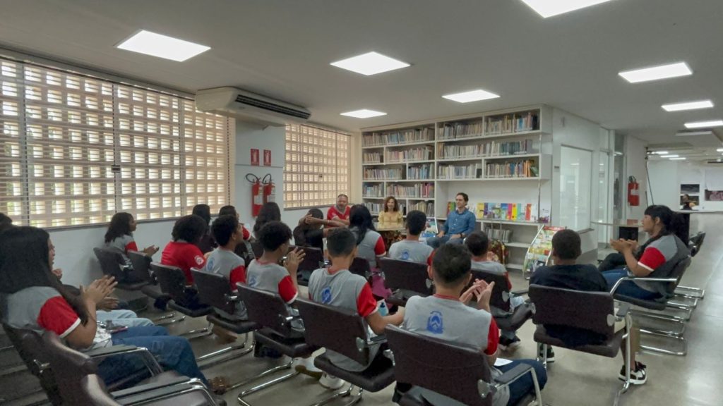 A manhã começou com uma roda de conversa literária na Biblioteca Jaime Câmara, no Espaço Cultural, com a escritora Dra. Gislene Camargo e o presidente da Academia Palmense de Letras (APL), Orion Milhomem. Os estudantes compartilharam suas experiências e aprendizados sobre o projeto e a poesia, recebendo valiosas orientações e diversas obras literárias como presente.