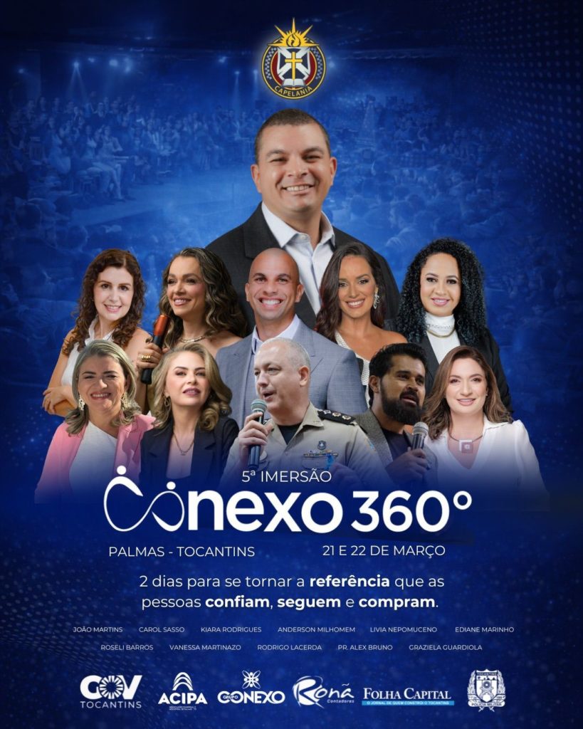 A Polícia Militar do Tocantins, por meio da Coordenação Geral da Capelania Militar, em parceria com o Grupo Conexo, a Associação Comercial e Industrial de Palmas, Ronã Contadores e Folha Capital, promove o CONEXO 360º — uma experiência formativa voltada ao fortalecimento da comunicação, liderança e conexões estratégicas.