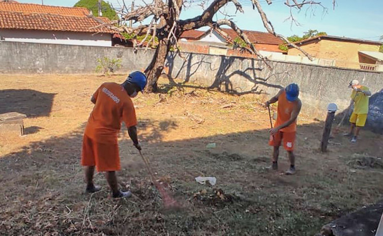 Custodiados da Unidade Penal de Colmeia trabalharam nesta quarta-feira, 7, na limpeza e coleta de entulhos na escola desativada do município, Chapeuzinho Vermelho. O objetivo dessa ação é evitar o acúmulo de roedores, dizimar focos de mosquitos causadores de doenças, contribuindo com a saúde pública da população local.